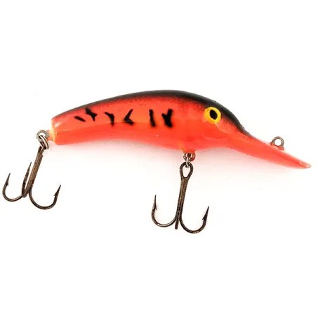 Hlubokopotápivé oranžovo-černé tělo charakterizuje tento vintage Lindy Shadling UV, který vyniká jako unikátní relikvie z řady Lindy / Little Joe. Wobler o délce 5 cm (2") má výrazný přechod z černé do oranžové barvy na hřbetě a bocích, doplněný tmavými svislými pruhy, které připomínají raka nebo tygří vzor. Nadstandardně velká lopatka je plynule integrována do hlavy a obsahuje přední očko, což umožňuje dosáhnout větších hloubek. Tento konkrétní exemplář s produktovým kódem 12984 váží 7 g (1/4 oz) a představuje éru americké výroby 80. let. Žlutě malované oči vytvářejí ostrý kontrast k tmavému profilu hlavy. Z hlediska stavu je hodnocen 5/5; přestože zůstává ve skvělém stavu, bližší pohled odhaluje drobné povrchové oděrky na lopatce a horní části hlavy způsobené skladováním. Výbavu tvoří dva původní bronzové trojháčky. Tato nástraha byla specificky navržena s UV reaktivními vlastnostmi pro zvýšení viditelnosti v horších světelných podmínkách nebo ve hlubších částech vodního sloupce.