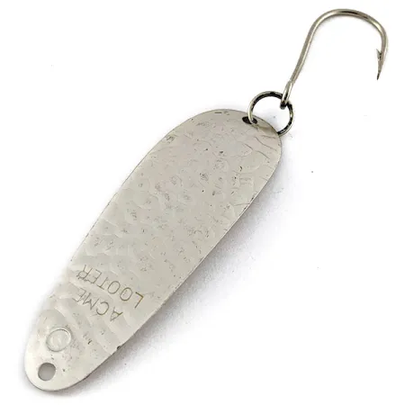 Tloukaný stříbrný povrch těla o hmotnosti 1/8 oz (4 g) vytváří mnohostrannou reflexní plochu navrženou pro efektivní odlesky světla při trollingu. Tato 2 1/4" (6 cm) plandavka Acme Looter s produktovým kódem 20485 je speciální nástraha, která ukazuje jednoduchost klasického amerického kovového zpracování. Zadní strana je hladká a nese jasně vyražený název výrobce a modelu, přičemž celý kus je ve vynikajícím stavu 5/5. K tělu kapkovitého tvaru je pomocí pevného kroužku v ocasní části připevněn jednoháček, zatímco v hlavové části se nachází precizně vyvrtaný otvor pro navázání.