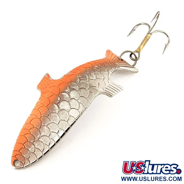 Tato 14g (1/2 oz) kovová plandavka s vyraženým názvem 'PHOEBE' na zadní straně se vyznačuje klasickou siluetou rybky, která definovala přítomnost značky Acme v historii amerického rybolovu. Povrchová úprava využívá paletu Nikl / Oranžová, kde horní hřbetní část v zářivě oranžové přechází do vysoce detailních, reliéfních šupin na leštěném kovovém těle. Tento 7cm (2 3/4") exemplář vyrobený v USA je výjimečně zachovalý, za což získal hodnocení stavu 5/5 díky nepoškozenému povrchu a původním komponentům. Jeho hydrodynamické zakřivení je navrženo tak, aby při pohybu ve vodě vytvářelo trojrozměrnou iluzi, což umožňuje efektivní lov v mělkých i hlubokých zónách. Nástraha s produktovým kódem 12217 je vybavena ostrým trojháčkem a robustním kroužkem.