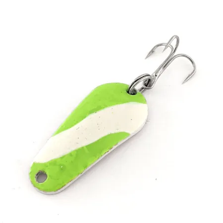 Plandavka Aero o hmotnosti 7 g (1/4 oz) zaujme výraznou povrchovou úpravou v barvách Zelená / Bílá / Měď, která zůstává spolehlivou volbou pro různé světelné podmínky. Tato 3,7 cm (1 1/2") dlouhá nástraha má na lakovaném povrchu výraznou tepanou texturu zajišťující komplexní odrazy světla. Model 11744 vyrobený v USA společností Aeroplane Spinner používá fluorescenční barvu, která intenzivně září pod UV světlem. Kontrastní diagonální pruhy jsou ostré, zatímco měděný základ nabízí hřejivý kovový záblesk z opačné strany. Osazení tvoří čistý trojháček připevněný pomocí robustního kroužku. S hodnocením stavu 5/5 nevykazuje tento exemplář žádné známky opotřebení a zachovává si své původní zářivé barvy i lesk kování.