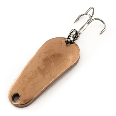 Hřejivý měděný povrch definuje tuto klasickou americkou plandavku, která odráží světlo s jemným leskem typickým pro historické kovové nástrahy. Tento model Aero (kód produktu: 11796), vyrobený společností Aeroplane Spinner v USA, představuje éru přímočarého a účinného designu rybářského náčiní. S hmotností 7 g (1/4 oz) a délkou 3,7 cm (1 1/2") je její kapkovitý profil vyražen s jemným zakřivením pro optimální chod ve vodě. Exemplář je nepoužitý a zůstává ve stavu 5/5, s čistým povrchem bez opotřebení. Je osazen stříbrným kroužkem a ostrým trojháčkem, které skvěle kontrastují s bohatým, načervenalým zlatým tónem měděného těla.