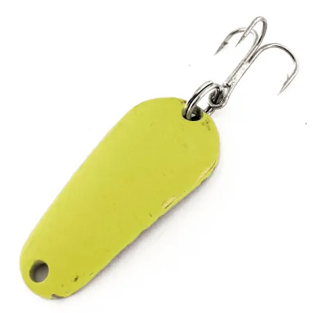 Tato v USA vyrobená plandavka o hmotnosti 1/4 oz (7 g) má kompaktní profil navržený pro všestrannou prezentaci ve vodním sloupci. Společnost Aeroplane Spinner navrhla model Aero UV (kód produktu 11824) s tělem o délce 1 1/2" (3,7 cm) v barvě Chartreuse / Zlatá. Tento fluorescenční nátěr je speciálně navržen tak, aby reagoval na ultrafialové světlo, což zajišťuje silnou zelenou luminiscenci pro vysokou viditelnost v prostředí se slabým osvětlením. Výbava se skládá z robustního kroužku a ostrého trojháčku, což odpovídá spolehlivým konstrukčním standardům klasického amerického rybářského náčiní. S hodnocením stavu 5/5 vykazuje nástraha pouze drobné povrchové stopy na laku, přičemž si zachovává vysoký lesk. Kapkovitý tvar a masivní kovová konstrukce odrážejí funkční design určený pro rybáře cílící na druhy, u nichž je vizuální atraktivita barvy klíčovým faktorem.