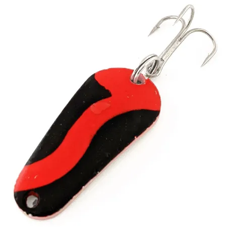 Tento model v klasické estetice Aeroplane Spinner zdobí odvážný černo-červený vlnitý vzor na zlatém podkladu. Aero UV pochází z USA a je opatřeno speciálním fluorescenčním nátěrem, který živě reaguje na ultrafialové světlo. S univerzální hmotností 7 g (1/4 oz) a délkou 3,7 cm (1 1/2") představuje standardní nahazovací profil pro různé druhy sladkovodních ryb. Trojháček je bezpečně připevněn pomocí robustního kroužku, což zajišťuje maximální pevnost sestavy. Tento konkrétní kus s produktovým kódem 12055 má hodnocení stavu 5/5, vyznačuje se čistým povrchem a jasnými barvami. Kontrast mezi hlubokou černou a zářivým červeno-oranžovým pruhem poskytuje výrazný vizuální signál v prostředí se slabým osvětlením.