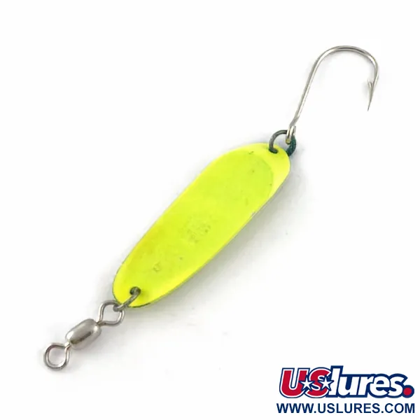 Jasně žlutý nátěr pokrývá štíhlé kovové tělo tohoto 5 cm (2") modelu. Tato nástraha Andy Reekers, evidovaná pod produktovým kódem 23691, představuje klasický design z historie tohoto amerického výrobce. Povrchová úprava tohoto kusu je výjimečně zachovalá, vykazuje čistý a jednotný povrch, který odpovídá hodnocení stavu 5/5. Osazení tvoří válečkový obratlík v přední části a jeden cínovaný háček upevněný pomocí kroužku vzadu. S hmotností 5 g (3/16 oz) je kovová konstrukce vyvážena pro nahazování i techniky lehkého trollingu. Úzký, protáhlý profil zůstává charakteristickým prvkem značky Reekers a díky vysoce viditelné barvě vynikne v každé sbírce vintage náčiní.