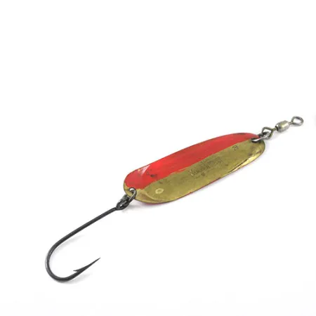 Na mosazném těle této plandavky o hmotnosti 4,5 g (3/16 oz) jsou vyražena data patentů sahající až do 20. let 20. století, konkrétně 16. října 1923 a 2. února 1926. Andy Reekers 3 o délce 5,0 cm (2") je klasická americká nástraha na trolling, navržená pro stabilní pohyb ve vodním sloupci. Zatímco původní povrchová úprava je mosazná, na jednu polovinu listu byl nanesen červený pruh – běžná úprava prováděná rybáři pro zajištění vysokého kontrastu a viditelnosti. Na spodní části plandavky je jasně vyražena velikost 3 přímo nad kroužkem. Nástraha je osazena jednoháčkem a horním obratlíkem a vykazuje viditelné známky času stráveného v rybářském kufříku, což jí vysloužilo hodnocení stavu 3/5. Její konstrukce odráží robustní výrobu typickou pro americké rybářské náčiní z poloviny století, určené primárně pro trolling ve sladké i slané vodě.