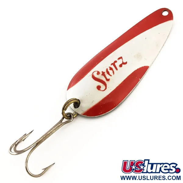 Tato klasická plandavka s prohnutým kovovým tělem o délce 7,5 cm (3") zaujme tradičním provedením v barvách červená / bílá / nikl. Bíle smaltovaná přední strana je zdobena logem Storz ve stylizovaném červeném písmu, které tuto nástrahu Nebco spojuje s historickým pivovarem v Omaze. Na zadní straně zůstává niklovaný povrch jasný a zřetelně zobrazuje ražbu výrobce NEBCO OMAHA NEBR AQUA SPOON. Pro rybáře poskytuje hmotnost 17 g (3/5 oz) potřebnou váhu pro daleké nahazování nebo hlubinný trolling. Výbava tohoto modelu s kódem 11766 zahrnuje ostrý trojhák připevněný pomocí robustního kroužku. Tento kus je ve stavu 5/5, vykazuje výjimečně čistý povrch a syté barvy bez známek používání.