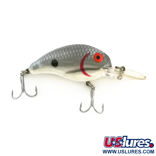 Tento 5 cm (2") dlouhý Bandit 200 se stříbrnými šupinami zaujme kontrastním červeným žaberním obloukem a ladícíma červenýma očima. Tento 8,5g (1/3 oz) plovoucí crankbait s kódem produktu 8162 je navržen pro dosažení hloubek až 3 m (9,8 ft) při nahazování nebo trollingu na candáty a štiky. Jeho perleťově bílé břicho přechází v šedě šupinatý hřbet, uprostřed označený jedinou černou tečkou, která napodobuje běžné vzory nástražních rybek. Tento kus je ve stavu 5/5, má čisté komponenty a původní čiré nořítko. Chrastící mechanismus uvnitř těla poskytuje zvukový prvek během navíjení. Háčky jsou ostré a originální, což odráží řemeslné zpracování těchto nástrah vyrobených v USA.