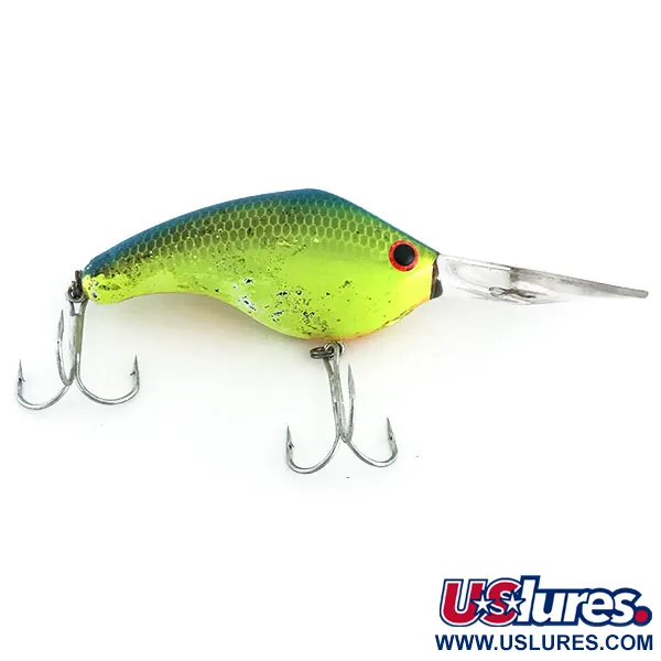 Aktivace ultrafialovým světlem umožňuje tělu o hmotnosti 21 g (3/4 oz) v hloubce výrazně zářit, což je klíčová vlastnost pro rybolov v prostředí se sníženou viditelností. Tento model o délce 7 cm (2 3/4") má zářivě žluté břicho a boky, které přecházejí v modro-zelený šupinatý hřbet, doplněný výrazným červeným okem. Bandit 700 UV (kód produktu 9021) je specializovaný hlubokopotápivý wobler navržený tak, aby při nahazování nebo trollingu dosahoval hloubek mezi 4,2 m a 5,4 m (14–18 stop). Čirá, prodloužená lopatka je spojena s vnitřní chrastící komorou, což je konstrukční prvek americké značky Bandit Lures určený k vyprovokování útoků candátů a štik v kalné vodě. Wobler vykazuje drobné známky manipulace odpovídající hodnocení stavu 4/5 a zachovává si původní osazení. Dva břišní trojháčky jsou zajištěny robustními kroužky a jsou připraveny k okamžitému použití.