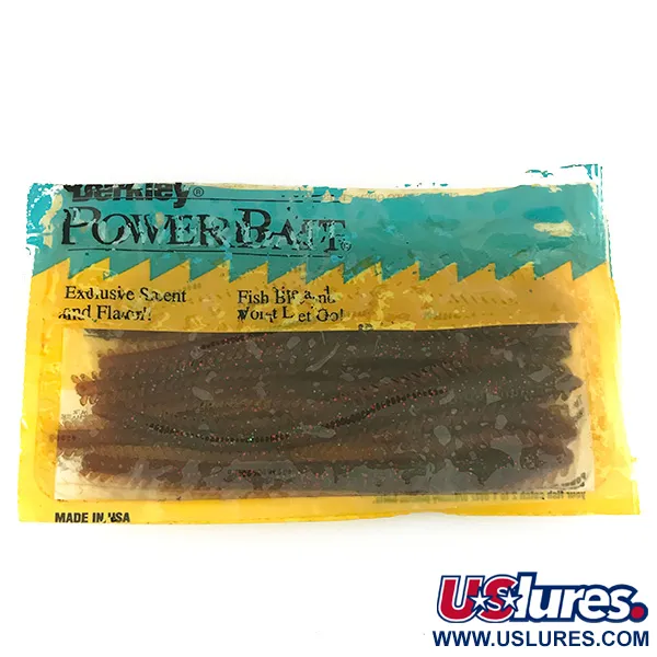 Tyto měkké nástrahy o délce přesně 15 cm (6") představují zásadní éru v technologii nástrah napuštěných atraktantem. Toto konkrétní balení o hmotnosti 17,3 g (0,61 oz) se dodává v barevném provedení Red – průsvitná, tmavě hnědočervená s jemnými červenými třpytkami. Tato 8dílná sada s produktovým kódem 7097 je nepoužitá v původním historickém žluto-modrém obalu. Design se vyznačuje silně vroubkovaným tělem, které přechází v úzký ocásek, což je tvar optimalizovaný pro jigging a prezentaci u dna. Vyrobeno v USA, obal obsahuje na zadní straně ikonický graf účinnosti Berkley, který zdůrazňuje vědecký přístup k jejich formuli PowerBait. Měkká textura a detailní vroubkování jsou charakteristické pro kvalitu, kterou si Berkley v tomto období výroby udržovala.