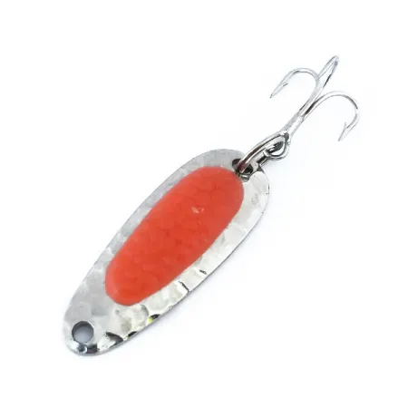 Tepaný nikl vytváří vysoce lesklý povrch na této kompaktní 3,5 cm (1 1/2") těžké mosazné plandačce. S váhou 4,5 g (3/16 oz) má Blue Fox Pixee UV klasický kapkovitý profil navržený tak, aby si udržel svou akci i v silných říčních proudech nebo hlubokých jezerních jamách. Dominantním prvkem tohoto modelu (kód 11006) je středová červená vložka imitující lososí jikru. Tento fluorescenční prvek reaguje na UV světlo a poskytuje zářivý vizuální bod v kalné vodě. Značka Blue Fox tyto třpytky zkonstruovala s dostatečnou hmotností pro daleké náhozy i proti pobřežnímu větru. Exemplář je ve vynikajícím stavu s čistým povrchem (hodnocení 5/5). Na zadním kroužku je ostrý trojháček, připravený na lov pstruhů, lososů nebo okounů.