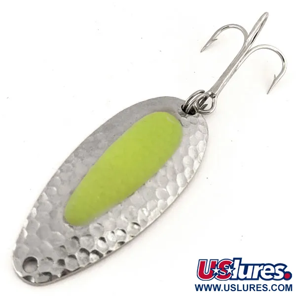 Tato 6,5 cm (2 1/2 palce) dlouhá plandavka se silnostěnným mosazným tělem je zkonstruována tak, aby prorazila pobřežní vítr a dosáhla hlubokých tůní, kde se často zdržují lososi a pstruzi duhoví. Povrchová úprava z tepaného niklu poskytuje texturovaný povrch, který zachycuje a rozptyluje světlo, zatímco zářivě žlutá vložka imitující lososí jikru je navržena s UV efektem, aby zůstala viditelná v kalné vodě nebo při slabém osvětlení. Tato nástraha o hmotnosti 24 g (3/4 oz) s produktovým kódem 12701 nevykazuje žádné známky opotřebení a má hodnocení stavu 5/5. Tento specifický model, který byl původně součástí řady National Expert Bait (NEBCO) před přechodem značky pod Blue Fox, je vybaven vysoce kvalitním trojháčkem připevněným přes robustní kroužek. Je efektivní volbou jak pro nahazování v silných říčních proudech, tak pro trolling na otevřené vodě, kde jeho hustota umožňuje hlubokou prezentaci. Přední hrana je vybavena čistým upevňovacím bodem určeným pro použití s karabinkou s obratlíkem pro usnadnění přirozeného houpavého pohybu při navíjení.