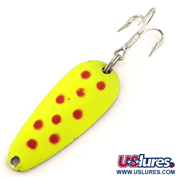 Tato americká plandavka s výrazným nátěrem v barvě chartreuse a červenými tečkami je navržena pro vysokou viditelnost v různých podmínkách čistoty vody. V nepoužitém stavu (hodnocení 6) zůstává povrchová úprava ostrá a reflexní po celém 5 cm (2") profilu. Zatímco fluorescenční barva chartreuse vyniká za denního světla, specifické využití této Blue Fox Tor-P-Do UV spočívá v jejím reaktivním nátěru, který intenzivně září pod UV světlem, díky čemuž se červené tečky jeví jako tmavé, vysoce kontrastní body pro útok dravce. Silný trojháček je připevněn robustním kroužkem k leštěné poniklované spodní straně, což přispívá k celkové hmotnosti 14 g (1/2 oz) pro efektivní nahazování nebo vertikální jigging. Tato nástraha s kódem produktu 12796 využívá svůj kapkovitý tvar a zatížené tělo k udržení stability při trollingu v hloubce.