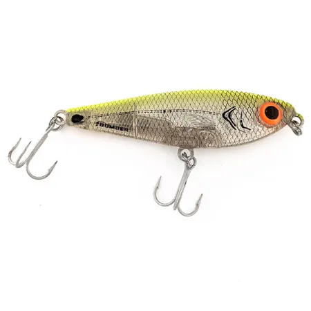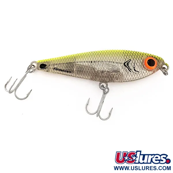 Zářivě chartreuse hřbet přechází do detailně texturovaných stříbrných šupin na bocích této povrchové nástrahy. Tato nástraha s hmotností 1/2 oz (14 g), navržená pro lov štik a okounů, poskytuje dostatečnou hmotnost pro stabilní nahazování k vázkám. Tento model Bomber Badonk-A-Donk Low Pitch s kódem produktu 11482 je osazen robustními trojháčky a kroužky, které zvládnou i agresivní útoky dravců. Tělo o délce 3 1/2" (9 cm) ukrývá chrastící komoru s nízkým tónem, která vysílá hluboký akustický signál k přilákání ryb z hloubek, zatímco se nástraha pohybuje přímo na hladině (0 ft / 0 m). Výrazné oranžové oko s vysokým kontrastem slouží jako bod útoku na metalickém povrchu. V kondici 5/5 vypadá nástraha nepoužitě, se zachovalým logem Bomber a detaily šupin. Tato nástraha vyrobená v USA odráží historii značky ve výrobě odolných a hlučných hladinových nástrah pro specifické podmínky u vody.