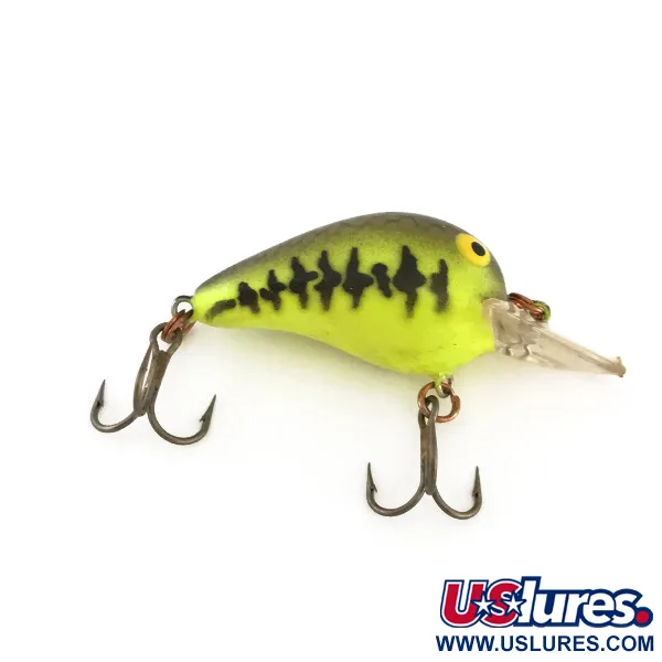 Tento ultralehký wobbler o hmotnosti 1/16 oz (2 g), který při zastavení plave na hladině, je precizním nástrojem pro příznivce lehké přívlače. Tento konkrétní model Bomber Fat A B03F pod kódem produktu 7859 je vyveden v barevném provedení CBB Baby Bass. Vizuální profil tvoří výrazný žluto-reflexní základ doplněný tmavým mramorováním, které napodobuje siluetu mladého okouna. Pod UV světlem vykazuje povrchová úprava zřetelný jas, což zajišťuje viditelnost v kalné vodě nebo během lovu za špatných světelných podmínek. Tělo o délce 1 1/4" (3 cm) je doplněno čirou lopatkou navrženou pro ponor do hloubky 1,2 - 1,8 m (3,9 - 5,9 ft). Tento mělce potápivý exemplář je osazen dvěma trojháčky v bronzové úpravě a je hodnocen stupněm 5/5 pro svůj vynikající stav se zachovalým lakem i kováním. Je určen pro techniky nahazování se zaměřením na druhy jako okoun a tloušť.