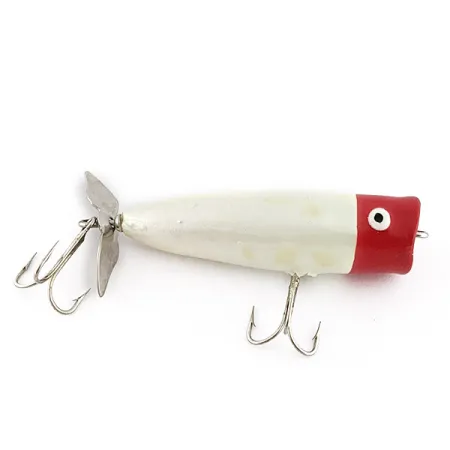 Tento exemplář charakterizuje klasický vzor red head, který se vyznačuje sytě červenou přední částí v kombinaci s perleťově bílým gumovým tělem. S hmotností 14 g (1/2 oz) a délkou 7 cm (2 3/4") představuje tato hladinová nástraha od společnosti Burke Flexo-Products Company unikátní éru gumových nástrah vyráběných v Michiganu v letech 1950 až 1993. Měkká konstrukce modelu s kódem 23204 byla navržena pro hladinový lov metodou popování, k čemuž využívá konkávní tlamku a výraznou kovovou vrtulku v zadní části pro rozvíření hladiny. Jeden trojháček na břiše je doplněn druhým trojháčkem umístěným za ocasním rotačním prvkem. Malované oči jsou dobře zachovalé a celkový stav 4/5 potvrzuje, že guma zůstává vláčná, jen s drobnými povrchovými stopami odpovídajícími stáří. Firma Burke byla proslulá těmito designy s „živou akcí“, které se soustředily na hmatovou odezvu, čímž se výrazně odlišovaly od tvrdých plastů používaných dobovými výrobci.