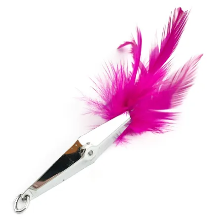 Tato nástraha z dílny James E. Clark o hmotnosti 5 g (3/16 oz) je doplněna výrazným trsem sytě růžových peříček. Tato konkrétní plandavka Clark Spoon o délce 4,5 cm (1 3/4"), označená produktovým kódem 5856, má leštěný chromový povrch typický pro vysoce kvalitní americké lžíce. Provedení proti vázkám využívá jednoháček ukrytý v peří, což umožňuje lov v zarostlých vodách bez uvíznutí. Reflexní kovový povrch i kování jsou dobře zachovalé, vykazují pouze lehké známky manipulace odpovídající stavu 4/5. Na předním očku je z výroby namontován kroužek pro přímé navázání vlasce.