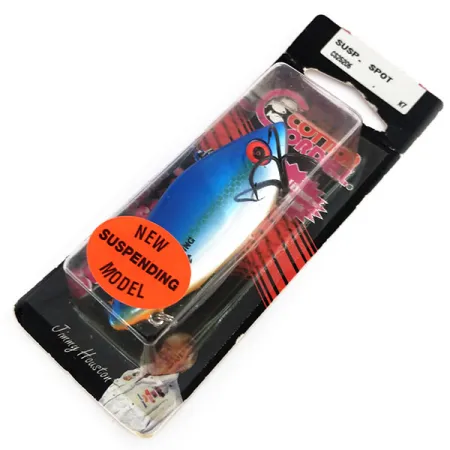 Tento 7,5 cm (3") lipless crankbait s výrazným modrým hřbetem je klasickým příkladem nástrahy vyrobené v Arkansasu. S hmotností 12 g (2/5 oz) je model Suspending Spot navržen tak, aby se při zastavení navíjení vznášel ve vodním sloupci, což je zásadní rozdíl oproti rychleji potápivému originálu Super Spot. Tento konkrétní kus je nepoužitý, uchovaný v originálním balení z roku 1997, které nese jasně oranžovou kruhovou nálepku „New Suspending Model“. Vnitřní konstrukce nástrahy obsahuje vyladěnou zvukovou komoru navrženou tak, aby při nahazování nebo trollingu vydávala chrastění a vibrace. Je osazen ostrými rotačními trojháčky Excalibur, což byl u nástrah této éry nadstandardní detail. Vyrobeno ve Fort Smith, AR, USA, tento kousek nese kód produktu 9917 a zůstává základem pro lov všeho od štik a okounů až po lososy a pstruhy.