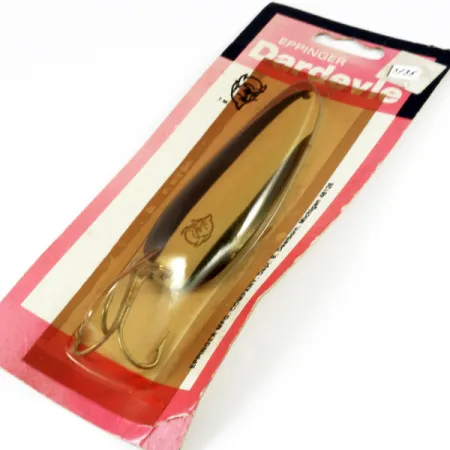 Tato těžká plandačka o hmotnosti 28 g (1 oz) je navržena pro daleké náhozy a prezentaci v hluboké vodě. Eppinger Dardevle s produktovým kódem 3135 měří 9 cm (3 1/2") na délku a na svém kovovém povrchu nese ikonické vyražené logo s hlavou ďábla. Tento konkrétní kus má povrchovou úpravu Černá / Bílá / Nikl a je dodáván v původním dobovém maloobchodním balení s růžovo-bílou kartou odkazující na éru výroby v Dearbornu v Michiganu. Nástraha je nepoužitá a udržuje si hodnocení stavu 6. Je osazena velkým, továrně montovaným trojháčkem a je vyrobena pomocí vlastních raznic, které Lou Eppinger zdokonalil před více než stoletím. Zadní strana karty obsahuje adresu společnosti Eppinger Manufacturing Company na Schaefer Highway, což je detail významný pro sběratele náčiní vyrobeného v Michiganu. Těžká kovová konstrukce zajišťuje, že se nástraha při plynulém přitahování drží hluboko v zóně záběru.
