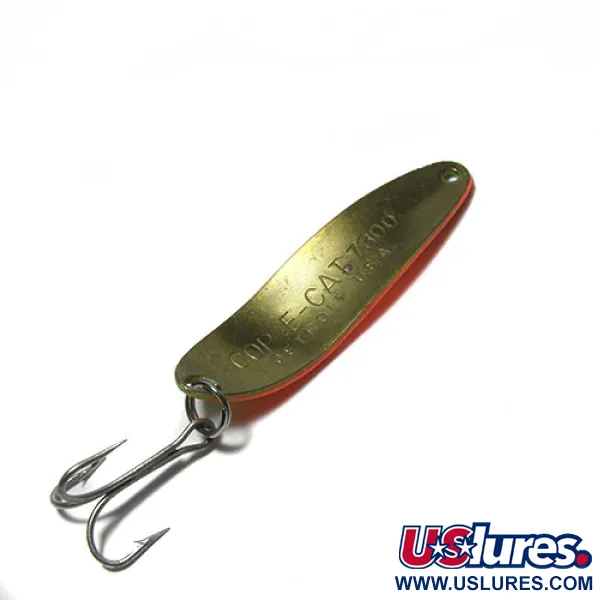 Tato plandavka od společnosti Eppinger o hmotnosti 10 g (1/3 oz) poskytuje potřebnou hmotnost pro daleké náhozy i proti mírnému vánku. Tento model Dardevle Cop-E-Cat 7300, označený produktovým kódem 0415, se vyznačuje vysoce viditelným vzorem Fire Tiger na pevném mosazném těle. Plandavka o délce 5,5 cm (2 1/4") má klasický podlouhlý tvar, díky němuž se designy Lou Eppingera staly od počátku 20. století v Detroitu základem každé rybářské krabičky. Povrchová úprava je ve stavu 4/5, vykazuje zachovalé barvy a zřetelné černé svislé pruhy, které ostře kontrastují s oranžovým, žlutým a zeleným gradientem. Na spodní části konvexní strany je poblíž kroužku viditelná charakteristická ražba značky. Výbava zahrnuje robustní trojháček připevněný přes pevný kroužek. Protože je vyrobena na mosazném základu, nabízí jiný odraz světla ve srovnání s niklovanými verzemi, což je často preferováno v čisté vodě, kde je žádoucí jemnější záblesk. Tradice výroby těchto nástrah zůstává soustředěna v Michiganu a pokračuje v používání vlastních raznic pro zachování specifického zakřivení kovu.