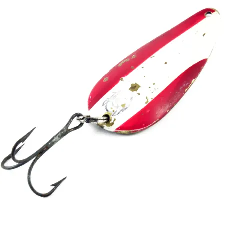Tato vintage plandavka s hmotností 21 g (3/4 oz) v sobě nese nezaměnitelnou váhu skutečné legendy mezi nástrahami pro daleké hody. Eppinger Dardevle Dardevlet (kód produktu 3133) o délce 7 cm (2 3/4") má na horní straně klasický červeno-bílý pruhovaný vzor. Drobné oděrky v lakování odhalují mosazný podklad, což dodává nástraze charakter a potvrzuje, že byla součástí rybářské výbavy. Na zadní straně jsou přímo do mosazi vyraženy nápisy „DARDEVLET“ a „DETROIT U.S.A.“, což je detail, který řadí její původ do období před rokem 1959, kdy se společnost přestěhovala do Dearbornu. Tento exemplář s hodnocením 4/5 si zachovává svůj původní trojháček a zůstává poctivou ukázkou specifických tvarů, které v Michiganu proslavil Lou Eppinger. Díky svému prohnutému profilu a robustní konstrukci se skvěle hodí jak pro daleké nahazování, tak pro hlubinný trolling.