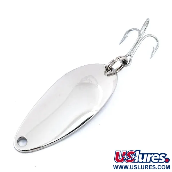 Vysoce leštěný niklový povrch definuje estetiku této klasické plandavky a zajišťuje vysokou viditelnost v čisté vodě. Tato Eppinger Dardevle Devle Dog 5200, vedená pod kódem 10682, má hmotnost 1/4oz (7g) a délku 1 1/2" (4cm). Na zadní straně nástrahy se nachází hluboká ražba s nápisem 'DEVLE-DOG 5200 DETROIT U.S.A.', která odkazuje na její původ a dědictví řemeslné výroby Lou Eppingera z Michiganu, která začala v roce 1906. Podlouhlé, konkávní tělo je navrženo tak, aby odráželo světlo, a je doplněno stříbrným trojháčkem. S hodnocením stavu 5/5 si tento exemplář zachovává jasný, zrcadlový povrch a ostré hroty háčku. Tato série využívá vlastní raznice společnosti Eppinger, což zajišťuje, že tradiční tvar zůstává konzistentní s nástrahami, které se po generace používají v sadách pro přežití a rybářských kufřících. Stříbrný trojháček je k ocasní části plandavky připevněn pomocí robustního kroužku.