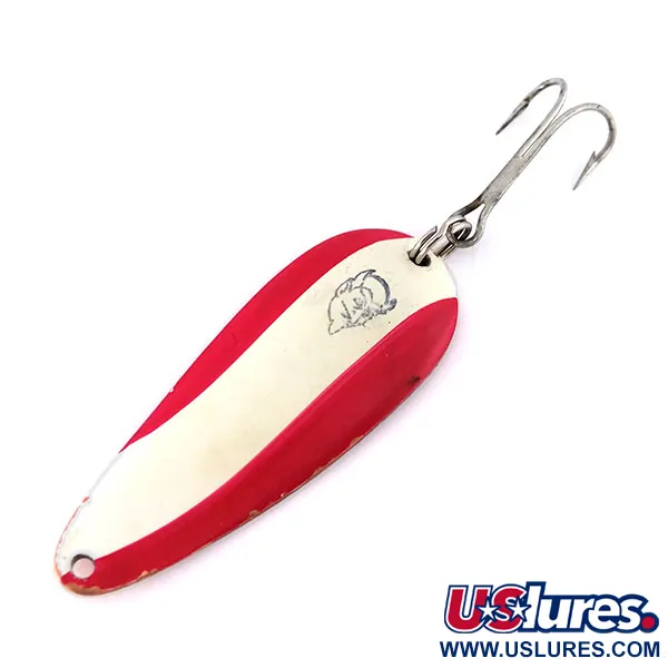 Tato plandavka Eppinger Dardevle Imp o hmotnosti 11 g (2/5 oz), s produktovým kódem 10012, je klasickým příkladem historie amerického rybářského náčiní. Přesně 5,5 cm (2 1/4") dlouhá plandavka se vyznačuje ikonickým červeno-bíle pruhovaným vzorem na přední straně, doplněným známým logem hlavy ďábla vyraženým uprostřed. Zadní strana odhaluje čistou měď s jasným ražením „DARDEVLE IMP U.S.A.“, které označuje původ a model. Tento konkrétní kus je ve stavu 5/5, vykazuje vynikající zachování barvy i kovu. Výbava plandavky se skládá z pevného kroužku a ostrého trojháčku, připraveného k lovu. Historicky byly tyto verze s měděnou zadní stranou často upřednostňovány v kalnější vodě, kde teplý kovový záblesk dokázal proniknout skrze zákal. Konkávní, podlouhlý tvar je charakteristickým znakem designu Lou Eppingera z roku 1906 z Detroitu, ačkoliv pozdější výroba se přesunula do Dearbornu. Tato velikost je velmi univerzální pro lehkou až střední přívlač při lovu štik nebo okounů. Barva má vysoký lesk a ražené značky na zadní straně zůstávají ostré a čitelné na měděném povrchu.