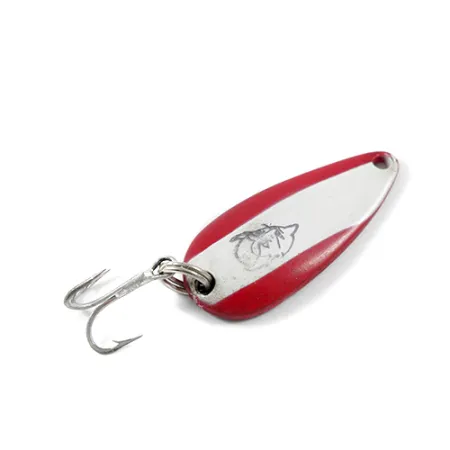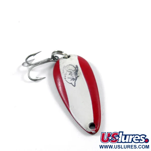 Tato kompaktní plandavka váží 6 g (3/16 oz), měří 3,5 cm (1 1/2 palce) a nese nezaměnitelný profil originálního výrobku Eppinger. Tento konkrétní model Dardevle Midget, evidovaný pod kódem 2727, má na své konvexní straně ikonický červenobílý pruhovaný vzor doplněný ostrým logem černé hlavy ďábla. Zadní strana odhaluje leštěný mosazný povrch s hlubokou ražbou „DARDEVLE MIDGET U.S.A.“. Osazení zůstalo původní, včetně pevného spojovacího kroužku a klasického trojháčku. Exemplář s hodnocením 5/5 vykazuje vynikající zachovalost bez známek opotřebení smaltu nebo kovového pokovení. Odkaz Lou Eppingera z Detroitu je patrný ve specifickém rozložení hmotnosti této plandavky – designu, který zůstal od vzniku značky na začátku 20. století v podstatě nezměněn. Konkávní vnitřní povrch je v mosazném provedení, což zajišťuje stálé odlesky při navíjení v různých hloubkách. Tato velikost je základem pro lov pstruhů a okounovitých ryb a představuje přechodové období v polovině století, kdy se společnost přestěhovala do Dearbornu v Michiganu.