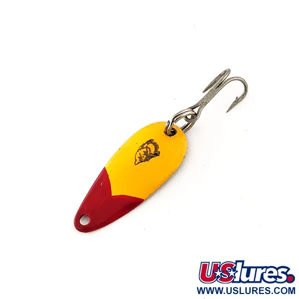 Červený a žlutý emailový lak zdobí líc této drobné plandavky a představuje zářivý barevný vzor, který zůstává stálicí po celá desetiletí. Model Skeeter o délce přesně 1" (2,3 cm) a hmotnosti 1/32 oz (1 g) je zkonstruován pro ultralehké vybavení při lovu okounovitých ryb nebo pstruhů. Poniklovaná zadní strana nese zřetelný ražený text „DARDEVLE SKEETER U.S.A.“, což je charakteristický znak dědictví firmy Eppinger, která začala v Detroitu v roce 1906. Tento exemplář s produktovým kódem 11631 má ve středu žlutého pole ikonické logo s hlavou ďábla. Je vybaven dvojháčkem upevněným pomocí robustního kroužku, což umožňuje efektivní použití v malých potocích. Pokud jde o zachovalost, nástraha je hodnocena stupněm 5/5, přičemž její lesklý povrch i kování zůstávají ve skvěle udržovaném stavu. Konkávní tvar kovu je typickým rysem těchto v Michiganu vyráběných plandavek určených pro přesné nahazování.