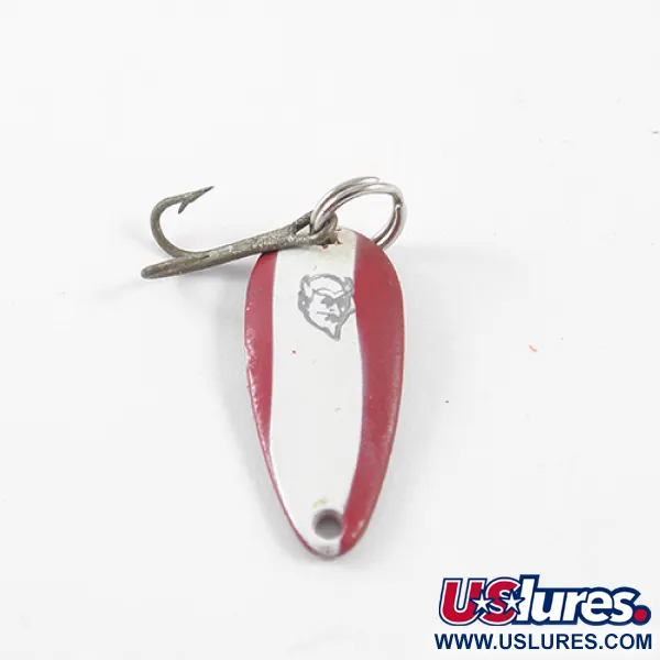 Klasický červeno-bílý pruhovaný vzor zdobí konvexní stranu této plandavky Eppinger Dardevle Skeeter, která zůstává základem pro nadšence ultralehké přívlače. Tento exemplář o hmotnosti 1/16oz (2g) s produktovým kódem 1440 vykazuje oddanost kvalitě výrobce z Detroitu. Tato 1" (2,3cm) plandavka má na lakované straně ikonické logo s hlavou ďábla, zatímco rubová strana má čistý niklový povrch s ražbou „DARDEVLE SKEETER U.S.A.“. Stav je hodnocen 5/5, protože povrchová úprava na obou stranách je výjimečně čistá. Tento konkrétní model využívá stejnou konkávní geometrii, kterou vyvinul Lou Eppinger v roce 1906, určenou pro nahazování a plynulé přitahování. Historicky účinnost těchto nástrah vedla k jejich zařazení do vojenských sad pro přežití a stejné řemeslné zpracování je patrné na kování a spojovacím kroužku. Při lovu umožňuje pomalé navíjení konkávnímu povrchu efektivně pracovat, i když mírné poškubnutí špičkou prutu může vyvolat mihotavý pohyb, pokud ryba nástrahu sleduje.