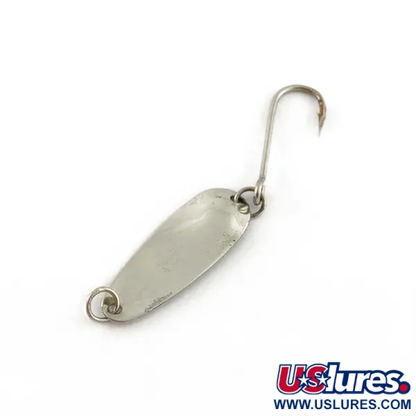 Tato plandavka Dick Nite (kód produktu 23538) s hmotností pouhých 1/32 oz (1 g) je specializovaným nástrojem pro jemné techniky prezentace jak na tekoucích, tak na stojatých vodách. Nástraha o délce 1" (2,5 cm) se vyznačuje ikonickým kapkovitým tvarem, který značka Dick Nite Spoons v USA dovedla k dokonalosti. Ačkoliv je v poskytnutých údajích uvedena měděná barva, tento konkrétní kus má lesklý stříbřitý povrch, který pod vodou vytváří jasné odlesky. Osazení zahrnuje jednoháček z jemného drátu připevněný ke kroužku, což je uspořádání často upřednostňované lovci pstruhů a lososů pro spolehlivou úspěšnost záseku. Při pohledu na povrch je nástraha ve stavu 5/5, s jasným a čistým vnějškem. Tato vintage plandavka je určena pro nahazování s lehkou výbavou nebo pro trolling v závěsu za větším vnadidlem.
