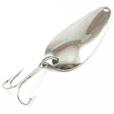Na konkávní straně kovu je jasně vyraženo jméno „EVANS“, které identifikuje tuto 2 1/2" (6,5 cm) plandavku jako klasický kus americké rybářské historie od Glen Evanse. Nástraha o hmotnosti 3/4 oz (21 g) je vyvedena v lesklém povrchu Rainbow Nickel, který nabízí značnou odrazivost v různých podmínkách průhlednosti vody. Tento exemplář s produktovým kódem 3247 je zachován ve stavu 4/5 a vykazuje dobře udržovaný povrch, který zvýrazňuje jeho kapkovitou geometrii. Součástí je velký trojháček připevněný pomocí pevného kroužku, určený pro náročné nahazování a stahování. Přesně vyvrtaný otvor v hlavě poskytuje bezpečný bod pro připevnění karabinky nebo návazce. Vyražená značka uvnitř těla plandavky zůstává ostrá a čitelná, což odráží průmyslové standardy její výroby v USA.