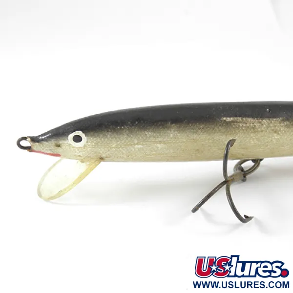 Tento 15 cm (6") dlouhý dřevěný wobbler typu minnow z Finska ztělesňuje rané designové principy poloviny 60. let. Tělo vyrobené firmou Finlandia Uistin kolem let 1963-1965 má přírodní barvu s tmavým hřbetem přecházejícím do zlato-stříbrných šupin na bocích. Historicky cenné jsou viditelné stopy po zubech na bocích, které dokazují úspěšnost nástrahy ve vodě a přispívají k hodnocení stavu 3/5. Štíhlý profil o hmotnosti 8 g (1/4 oz) je osazen dvěma trojháčky a čirou lopatkou, katalogové číslo 1302. Konstrukce odráží přechod od ručně vyráběných lidových nástrah k standardizované severské produkci té doby.