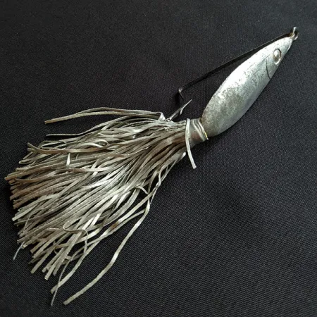 Stříbrná povrchová úprava charakterizuje vzhled tohoto vintage exempláře, který nese výraznou ražbu „Hawaiian“ na svém kovovém povrchu. S hmotností 3/5 oz (16 g) je Fred Arbogast Hawaiian #3, identifikovaný pod produktovým kódem 20096, robustní nástrahou určenou pro lov v hustých porostech. Tělo měří 2 1/4" (6 cm) a je osazeno pevným jednoháčkem s odolným drátěným chráničem proti váznutí. Hustý střapec ve stříbrném tónu dodává profilu značný objem a je bezpečně ukotven za kovovou hlavou kapkovitého tvaru. Tato nástraha pocházející z USA vykazuje lehké známky své historie, ale zůstává v zachovalém stavu 4/5, přičemž vyražený název výrobce je stále jasně čitelný. Oko je znázorněno jednoduchým reliéfním kroužkem na hlavě, což je charakteristický znak designu Arbogast z poloviny minulého století. Robustní provedení odráží tradiční zaměření značky na odolnost a funkčnost pro lovce dravců.