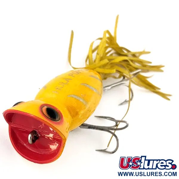 Muzejní archiv: Fred Arbogast Hula Popper Popper, Žlutý, 14g, Gumové Třásně, #12657