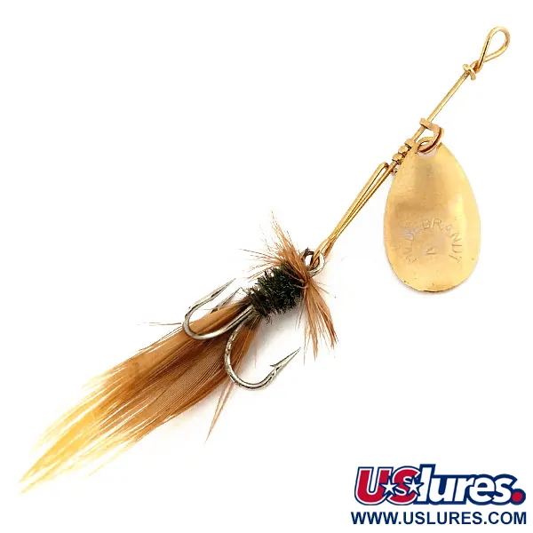 S hmotností 1,2 g (3/64 oz) představuje Hildebrandt 2 klasický americký design optimalizovaný pro ultralehkou přívlač. Leštěný zlatý list ve tvaru kapky slouží jako hlavní lákadlo, s jasně vyraženou značkou výrobce a velikostí. Nástraha o celkové délce 6 cm (2 1/4") je vybavena trojháčkem s přírodním hnědým peřím a tmavě olivovým ovinem těla. Tento exemplář s produktovým kódem 9630 je ve stavu 5/5, přičemž pozlacení i kování zůstávají jasné. Tento model od Hildebrandt Spinners vyrobený v USA využívá jednoduché drátěné uchycení háčku přes očko, určené pro nahazování a plynulé přitahování. Péřový ocásek zajišťuje viditelný profil ve vodě při zachování nízké hmotnosti nezbytné pro jemnou prezentaci.
