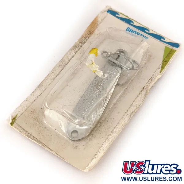 Povrchová úprava z tepaného niklu dodává této 14g (1/2 oz) celokovové nástraze strukturovaný a reflexní povrch. Tento model Shorty 45 (kód produktu 11240), vyrobený společností Hopkins Fishing Lures Co. v Norfolku ve Virginii, zůstává základním nástrojem pro lov dravých ryb ve slané i sladké vodě. Tělo měří 5,5 cm (2 1/4") a nese označení „Shorty“ vyražené přímo do kovu, což zaručuje, že identita značky přežije roky používání. Tento kus je nepoužitý a zůstává zataven v originálním balení, které vykazuje známky stáří v podobě ztmavnutí a opotřebení kartonu, zatímco samotná nástraha si zachovává tovární lesk. Standardní výbava zahrnuje pevný kroužek a trojháček, určený pro vertikální přívlač nebo daleké nahazování. Na zadní straně karty jsou vytištěny podrobné pokyny pro trolling a jigování v různých hloubkách, což podtrhuje všestrannost této americké klasiky.