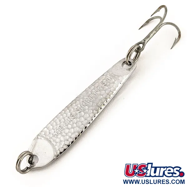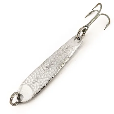 Povrchová úprava z tepaného niklu definuje vizuální profil této klasické vertikální nástrahy, která se vyznačuje důlkovanou texturou navrženou tak, aby zachycovala a odrážela světlo z mnoha úhlů. Hopkins Shorty S1 s kompaktní délkou 4,5 cm (1 3/4") a hmotností 9 g (1/3 oz) představuje univerzální volbu pro vertikální prezentaci i klasické nahazování. Na těle je jasně vyražen název výrobce i model a v katalogu je vedena pod produktovým kódem 12423. Masivní kovové tělo vyrobené v USA je doplněno ostrým trojháčkem a vysoce odolnými kroužky na obou koncích. Exemplář je ve stavu 5/5, zachovává si jasný, čistý povrch, který podtrhuje původní lesk niklování na kovaném těle. Hutný design tohoto modelu je specificky navržen pro rychlé dosažení hloubky při lovu druhů v hlubších vodních sloupcích.