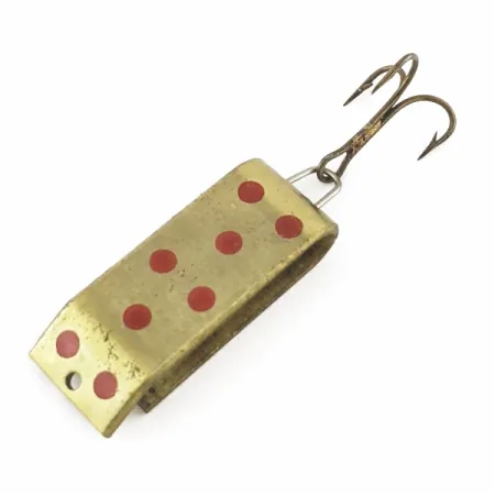 Zlaté a červené tečky rozeseté po mosazném těle charakterizují tento vintage model Lil Jake, klasický americký design od Jake's Lures. Tato nástraha s produktovým kódem 24326 váží 9 g (1/3 oz) a měří 3,5 cm (1 1/2") na délku. Konstrukce využívá unikátní profil z ohýbaného kovu, který je kratší a širší než u tradičních plandavek. Tento tvar byl navržen tak, aby zajišťoval „dvojí akci“ (dual action) zmiňovanou v historických katalozích. Tento konkrétní kus je ve stavu 5/5, s čistou povrchovou úpravou a výraznými červenými akcenty na vnější straně. Nástraha je navržena pro univerzální použití v čistých vodách a zůstává účinná i při nízkých rychlostech vedení při lovu pstruhů nebo lososů přívlačí i trollingem.