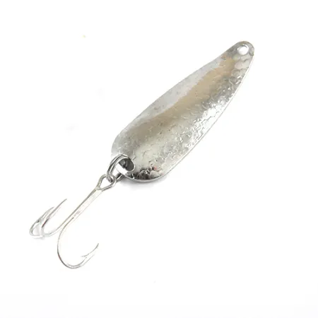 Tato kovová plandavka s jasně vyraženým názvem značky 'JEEP' na vnitřním konkávním povrchu je klasickým příkladem amerického náčiní z poloviny století. Nástraha váží 11 g (2/5 oz) a měří 5,5 cm (2 1/4"). Na konvexní straně se vyznačuje výraznou tepanou niklovou povrchovou úpravou, která zajišťuje fasetový odraz světla. Vnitřní strana je hladká a dává vyniknout raženému logu a původu výroby v USA. Tento exemplář s produktovým kódem 1321 je ve stavu 5/5, přičemž pokovování zůstává jasné a reflexní na obou površích. Ke konci je pomocí kroužku připevněn standardní trojháček, což ukazuje na jednoduchou a účinnou konstrukci typickou pro tyto rané plandavky.