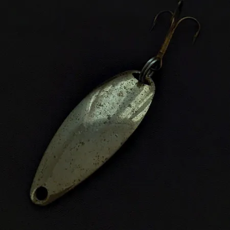 Vyražený název „JOHNSON'S SPRITE“ na kovu jasně identifikuje tuto 5cm plandavku jako základní součást amerických rybářských kufříků z poloviny minulého století. Tělo ve zlaté barvě o hmotnosti 7 g má štíhlý, protáhlý kapkovitý tvar navržený pro efektivní nahazování. Tento kus s produktovým kódem 22509 vykazuje na svém kovovém povrchu viditelné známky používání a stáří, což odpovídá hodnocení stavu 3/5. Nástraha byla vyrobena v USA a je vybavena bronzovým trojháčkem připevněným pomocí pevného kroužku v zadní části. Reflexní zlatá povrchová úprava zajišťuje dobrou viditelnost v různých typech vody, zatímco očko pro navázání v přední části zůstává čisté a funkční pro přímou montáž.