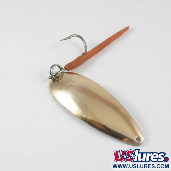 Tato plandavka Johnson Sprite o hmotnosti 17 g (3/5 oz) je klasickým kouskem americké rybářské historie, vyrobeným v době, kdy byla produkce ještě soustředěna v USA. S délkou 7 cm (2 3/4") se vyznačuje štíhlým, protáhlým profilem navrženým pro nahazování i trolling. Tento exemplář s produktovým kódem 2957 se představuje v kombinaci měděného a stříbrného povrchu, což nabízí různé varianty odlesků pro odlišné světelné podmínky. Na konvexní straně kovového těla je jasně vyražen název výrobce a modelu, což dokládá řemeslné zpracování očekávané od historického vybavení značky Johnson. V zadní části je na kroužku osazen jednoháček s výrazným oranžovým plastovým přívěskem, který vytváří vysoce viditelný kontrast k metalickému tělu. Tato nástraha je ve stavu 5/5, vypadá nepoužitě, s plně intaktními reflexními povrchy i osazením.