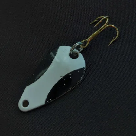 Tato plandavka ve tvaru slzy o hmotnosti 3,5 g (1/8 oz) vyniká výrazným černo-bílým vzorem v designu vln, který zdobí její přední stranu. Jde o zajímavý přírůstek pro sběratele lehké přívlače. Nástraha o délce 3 cm (1 1/4") má na zadní straně leštěný zlatý povrch s vyraženým označením „K.O. WOBBLER“. Tato americká klasika od značky Acme s produktovým kódem 22047 je vybavena trojháčkem ve zlaté barvě a robustním spojovacím kroužkem. Stav nástrahy odpovídá hodnocení 5/5; vypadá skvěle, vykazuje pouze drobné povrchové stopy, které jsou u autentických historických exemplářů z tohoto období běžné. Svým tvarem napodobuje malou rybku, čímž láká široké spektrum dravých ryb. Kovové části jsou stále lesklé a očko pro navázání vlasce je čisté, což dokládá vysokou kvalitu zpracování původní americké výroby.