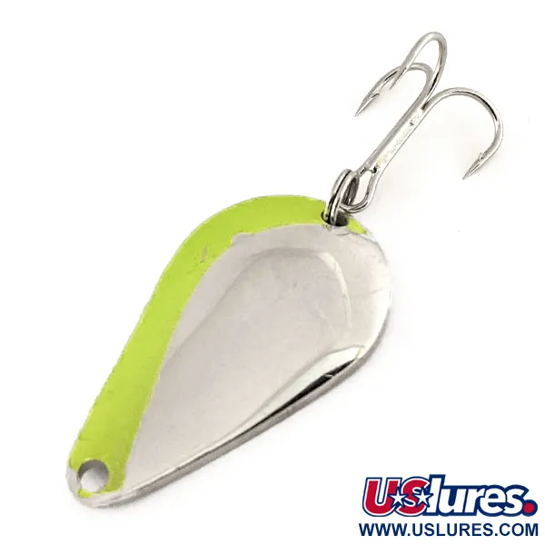 Poniklovaný povrch v kombinaci s výrazným zeleným pruhem definuje vzhled tohoto modelu značky Acme. S hmotností 1/2oz (14g) a délkou 1 3/4" (4,5cm) je K.O. Wobbler UV klasická americká plandavka navržená pro viditelnost v hlubokých nebo kalných vodách. Tento nástražní typ, katalogizovaný pod kódem 12259, disponuje speciální UV Glow vrstvou, která pod UV světlem vykazuje jasně zelenou luminiscenci a poskytuje tak rybě výrazný vizuální cíl. Výbava zahrnuje robustní trojháček a pevný spojovací kroužek, což podtrhuje její odolnost při náročném nahazování. Plandavka je známá vytvářením specifických zvukových vibrací při přitahování a je zkonstruována tak, aby lákala dravce zrakem i sluchem. Tento exemplář, vyrobený v USA, je hodnocen stavem 4/5, přičemž si zachovává svůj reflexní lesk a čisté hrany. Kapkovitý tvar a rozložení hmotnosti umožňují dosahovat značných odhozových vzdáleností i za větrného počasí.