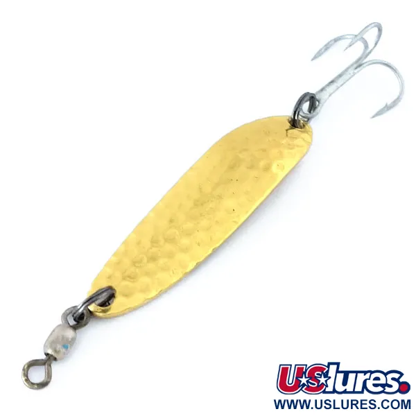 Tepané zlaté povrchy, jako je ten na této plandavce Luhr Jensen Krocodile Die #3, jsou legendární pro svůj odraz světla a schopnost přitáhnout pozornost z dálky v hlubších vodách. Na hladké zadní straně je jasně vyraženo 'KROCODILE DIE #3 LUHR JENSEN HOOD RIVER, ORE.'. Tento konkrétní kus s produktovým kódem 10855 pochází z historických kořenů značky v Oregonu v USA. S délkou 5,5 cm (2 1/4") a hmotností 10 g (1/3 oz) je její hutné, úzké tělo speciálně navrženo pro daleké nahazování nebo pro dosažení větších hloubek než u standardních tenkostěnných plandavek. Přední strana má hlubokou tepanou strukturu, která maximalizuje odlesky, zatímco leštěný mosazný povrch zůstává výjimečně čistý. Tato nástraha je ve stavu 5/5, působí velmi zachovale s ostrými hranami a čistým původním obratlíkem a trojháčkem. Rybáři tyto těžší plandavky často volí pro lov lososů nebo pstruhů, když je potřeba kompaktní profil pro efektivní průnik vodním sloupcem. Kroužky jsou pevné a hardware nevykazuje žádné známky opotřebení, připraveno do sbírky nebo přímo k řece.