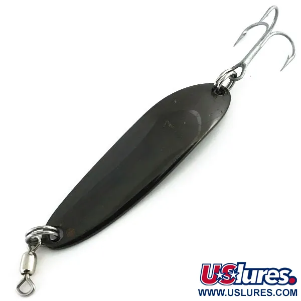 Ražba na vnitřní konvexní straně potvrzuje, že se jedná o originální výrobek Luhr Jensen z továrny v Hood River v Oregonu. Tato plandavka o délce 5,5 cm (2 1/4") nese označení 'Die #3' a váží 10 g (1/3 oz), což je ideální pro přívlač i trolling. Matně černá povrchová úprava poskytuje výraznou siluetu, což je taktická volba pro rybáře cílící na ryby za špatných světelných podmínek nebo v zakalené vodě. Tento vintage nález pod kódem 8775 je v nepoužitém stavu s hodnocením 5/5. Tovární osazení zahrnuje stříbrný trojhák upevněný pomocí kroužku a obratlík u očka pro snížení kroucení vlasce při stahování. Těžké, úzké kovové tělo je navrženo pro extrémně dlouhé náhozy při zachování stabilní akce.