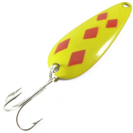 Díky konstrukci z masivní mosazi o hmotnosti 21 g (3/4 oz) je tato 7cm (2 3/4") plandavka Len Thompson #1 oblíbenou těžkou vahou pro lov štik a sivenů obrovských. Povrchová úprava „Five of Diamonds“ je odborně nanesena a tvoří ji pět ostrých červených kosočtverců na zářivě žlutém pozadí. Na zadní straně najdete klasickou značku výrobce vyraženou do čistého mosazného povrchu. Tento konkrétní kus s produktovým kódem 3682 je ve stavu 5/5, zachovává si vysoký lesk barvy i jasný lesk kovu. Od roku 1929 jsou tyto kanadské plandavky oceňovány pro svůj pomalý houpavý pohyb, který při nahazování nebo trollingu simuluje poraněnou rybku. Nástraha je osazena robustním trojháčkem, bezpečně upevněným na konci, aby zvládl výpad silného dravce.