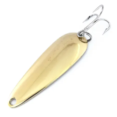 Tato masivní kovová plandavka o délce 3 1/4" (8 cm) má povrchovou úpravu v jasně zlaté barvě, která pod vodou vytváří hluboké kovové odlesky. Tento model Len Thompson #2 pod kódem 10732 váží 1 oz (28 g), což jej činí ideálním pro lov ve větších hloubkách při přívlači nebo trollingu na štiky a siveny obrovské. Na konkávní straně nástrahy je klasická ražba „LEN THOMPSON NO. 2“, která je symbolem kanadské výrobní tradice značky sahající až do roku 1929. Vyvážený tvar vytváří pomalý kolébavý pohyb simulující větší kořist. Výbava zahrnuje ostrý, stříbrný trojhák spojený robustním kroužkem, přičemž obojí je ve vynikajícím stavu. Tento kus je v kondici 5/5, s čistým a vysoce reflexním povrchem na obou stranách. Zlatá barva zůstává sytá a nabízí dravcům vysokou viditelnost v různých typech vod.