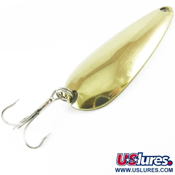 Tato těžká mosazná plandavka s ikonickou ražbou 'LEN THOMPSON NO. 2' na konkávní straně nese dědictví kanadského designu z roku 1929. S poctivou hmotností 28 g (1 oz) poskytuje kovové tělo potřebnou masu pro daleké náhozy nebo udržení hloubky při trollingu. Tělo o délce 8 cm (3 1/4") je vyvedeno ve vysoce lesklém zlatém provedení, které pokrývá celý povrch ve tvaru kapky a napodobuje odlesky prchající nástražní rybky. Tento exemplář s kódem 3680 je osazen odolným kroužkem a trojháčkem ve stříbrné barvě. Design je historicky ceněn pro svůj pomalý kolébavý chod, což je vlastnost, která zůstává standardem pro lovce štik a jezerních pstruhů. Tato konkrétní nástraha je ve stavu 5/5 s brilantním reflexním povrchem bez škrábanců či oxidace. Horní očko je čistě vytvarováno a zajišťuje hladké spojení s návazcem nebo karabinkou.