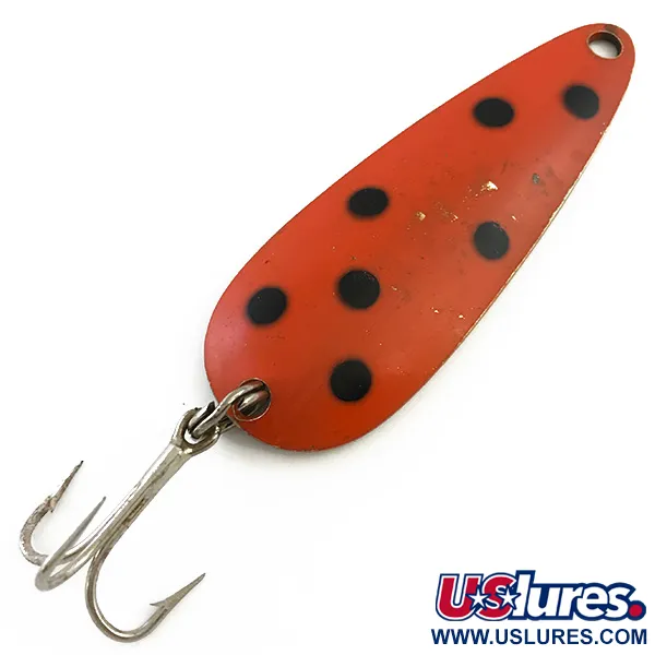 Na mosazné zadní straně je jasně vyraženo označení „LEN THOMPSON NO. 2“, které identifikuje tuto kanadskou klasiku, jež je součástí rybářských výbav již od roku 1929. Výrazně červená přední strana se vzorem osmi černých teček představuje ikonický vzhled navržený tak, aby napodoboval nástražní rybku a zároveň zůstal dobře viditelný v různých vodních podmínkách. S váhou 28 g (1 oz) a délkou 8,3 cm (3 1/4") je robustní konstrukce této plandavky určena pro všestranné použití, ať už při klasické přívlači nebo trollingu na štiky a jezerní pstruhy. Tento konkrétní kus, evidovaný pod kódem 5406, nese mírné známky používání z předchozích výprav, ale zůstává ve stavu 4/5, přičemž původní trojháček je stále ostrý a bezpečně připevněn pomocí pevného kroužku. Vyvážení kovového těla je poznávacím znamením této značky a umožňuje pomalý, kolébavý pohyb. Každá součást, od mosazného základu až po lakovaný povrch, odráží kvalitu očekávanou od výrobce s téměř stoletou tradicí v Albertě.