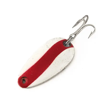 Diagonální červený pruh vytváří ostrý kontrast k bíle smaltované lícní straně této klasiky kanadské výroby. Tato konkrétní plandavka Len Thompson #6, vedená pod kódem 11190, odráží designovou filozofii, která zůstala od založení značky v roce 1929 v podstatě nezměněna. Mosazné tělo o velikosti 1" (2,5 cm) je na zadní straně zřetelně vyraženo jménem výrobce a velikostí modelu, což dává vyniknout leštěnému kovovému povrchu. S hmotností 1/8 oz (3,5 g) je nástraha konstruována pro nahazování nebo trolling a navržena tak, aby napodobovala profil malé nástražní rybky. Osazení zůstává ve výborném stavu, obsahuje robustní trojháček a kroužek. S hodnocením stavu 5/5 je smalt dobře zachovalý a mosaz si udržuje svůj původní lesk. Její chod je založen na pomalém kolébavém pohybu, což je technická vlastnost proslulá vyvoláváním záběrů od sivenů obrovských a štik.